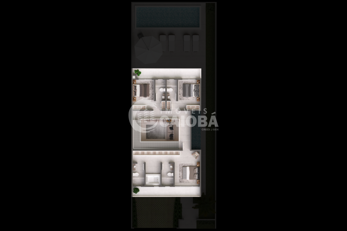 - O Imóvel do projeto possui um Pé direito Triplo no centro, para a entrada de iluminação (Podendo ser fechado e criado outro ambiente a escolha do comprador).