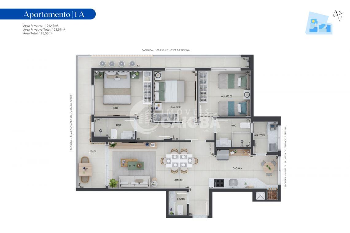 Apartamento de 3 Quartos (1 suíte) e 2 Vagas de Garagem em Caiobá no Edifício Club Monte Lazuli REF.:513