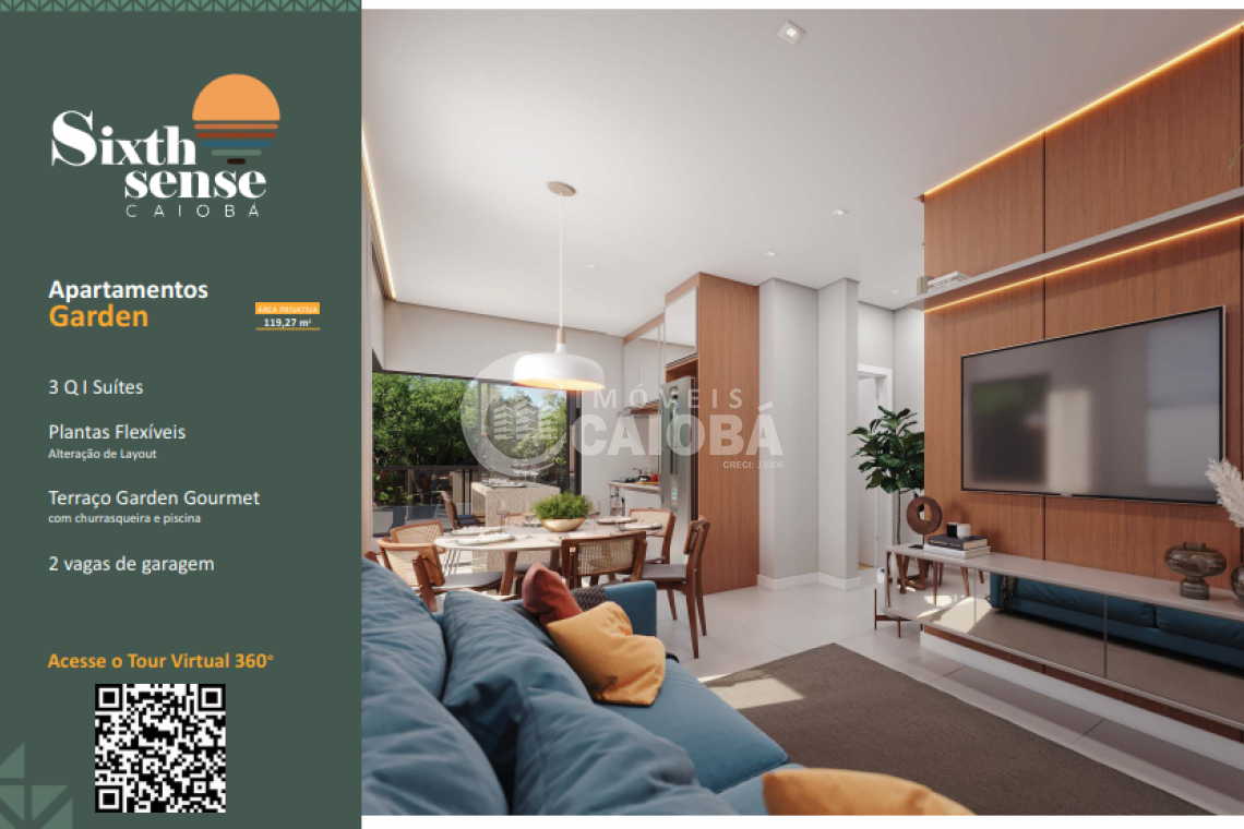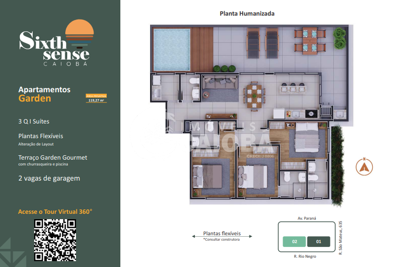 Unidade: 201 | Garden | Dormitórios: 3 suítes | Área Privativa: 119,27 | Área Total: 169,82 | Preço de Lançamento: R$1.399.000,00 (Tour Virtual 360º)