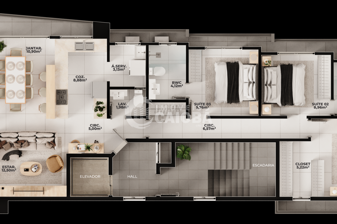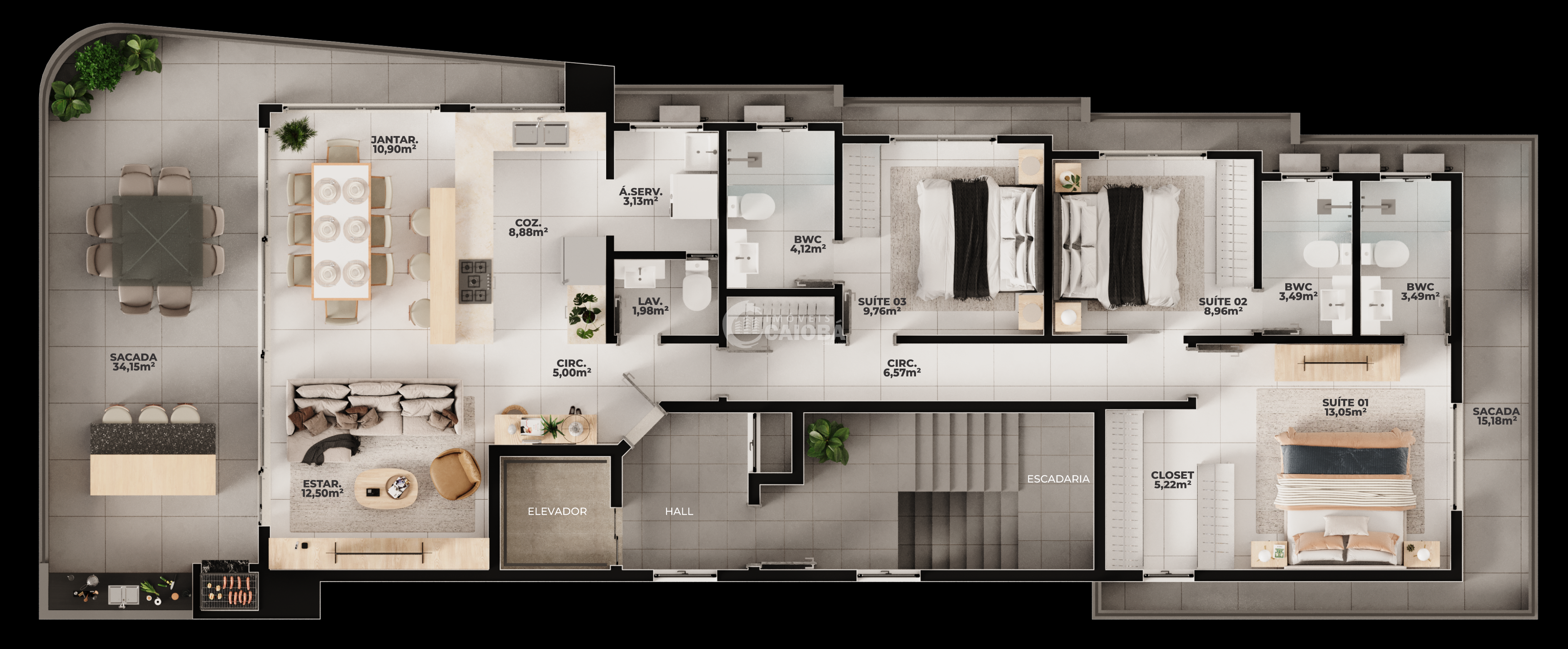 APARTAMENTO TIPO COM 177,98m² de Área útil e 281,26m² de Área total: