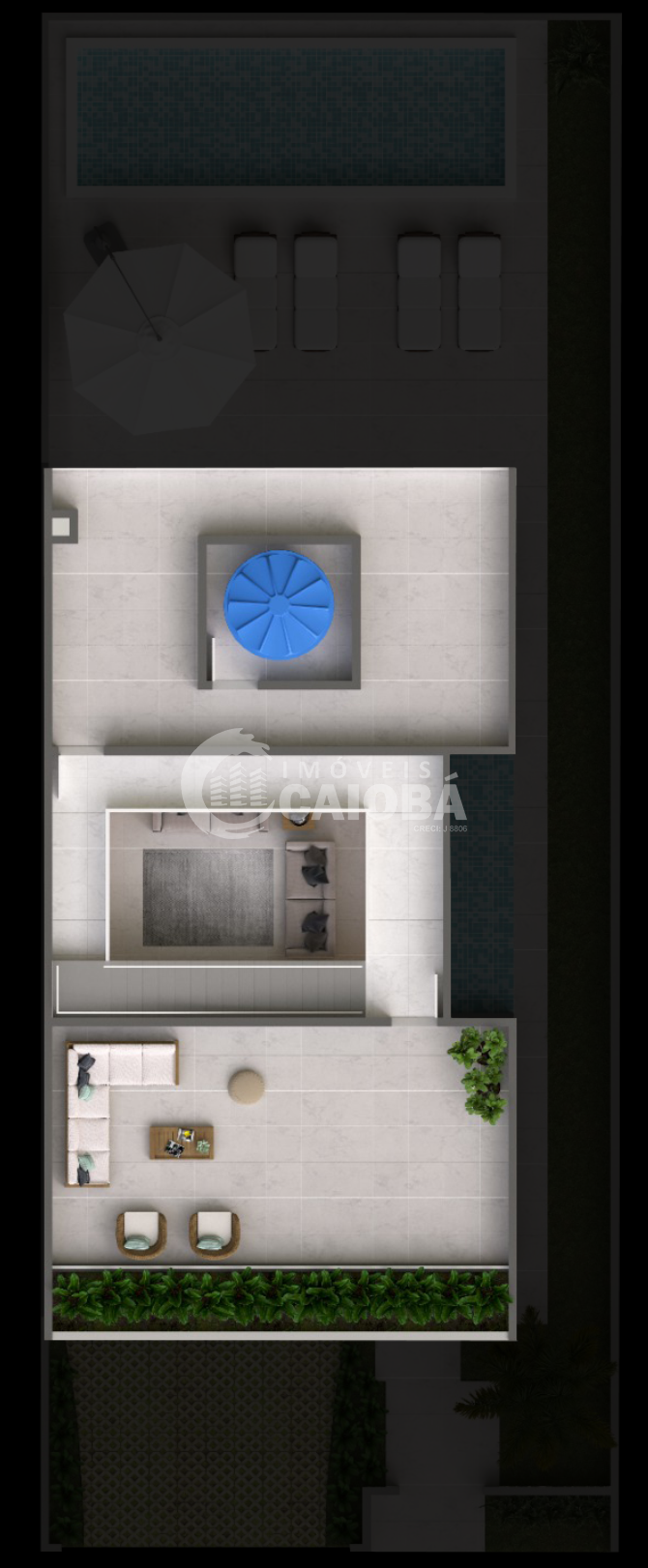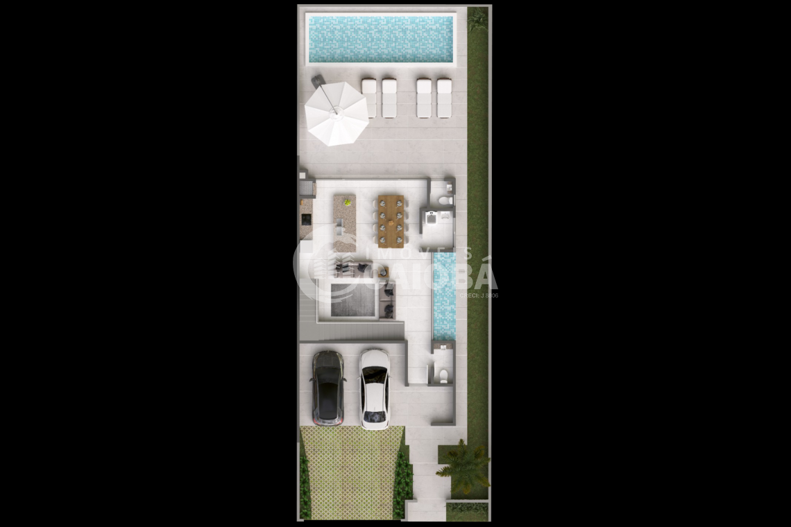 - O Imóvel do projeto possui um Pé direito Triplo no centro, para a entrada de iluminação (Podendo ser fechado e criado outro ambiente a escolha do comprador).