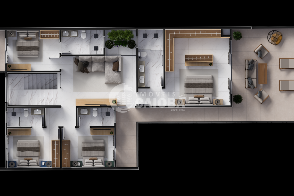 - Suíte principal com terraço privativo;